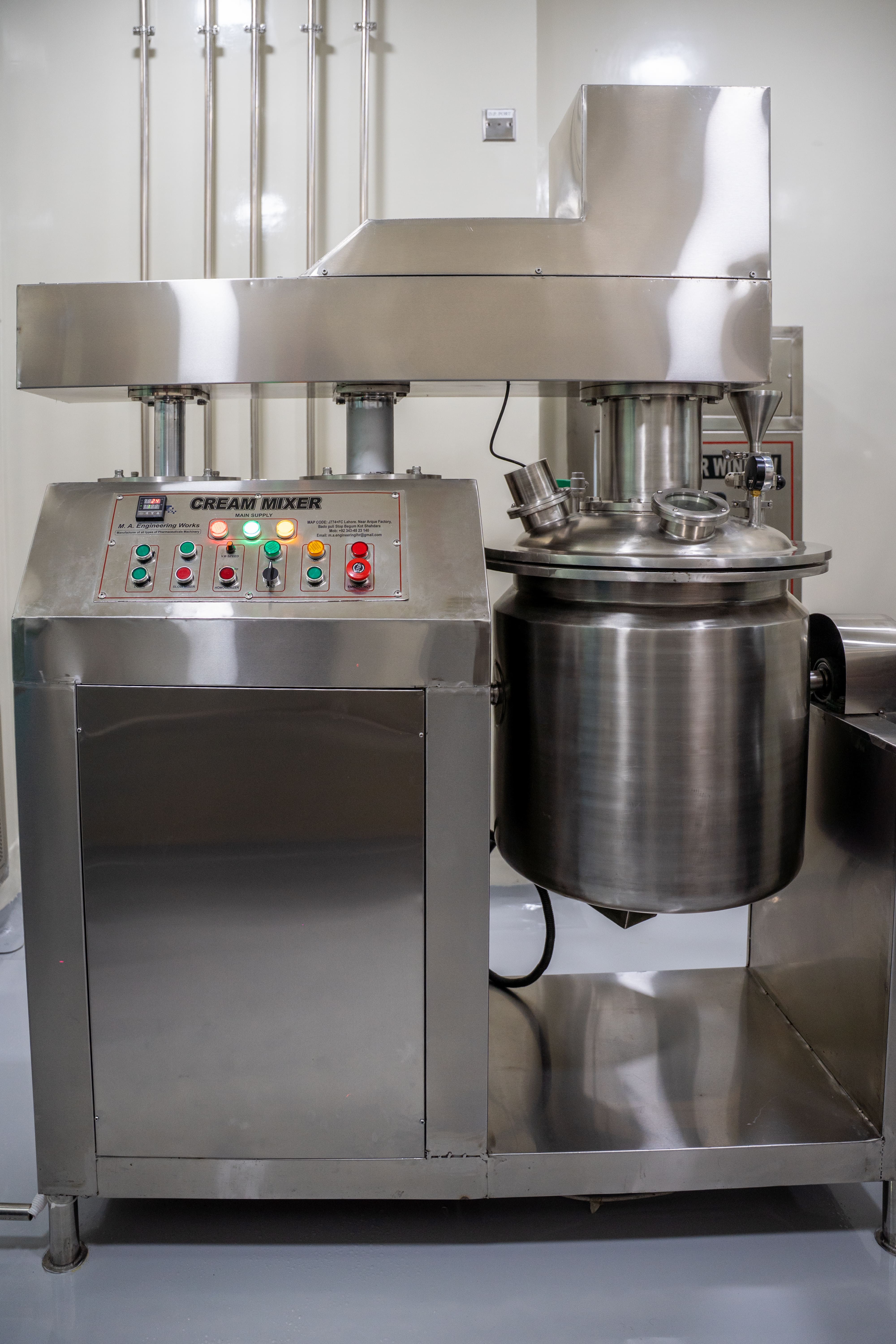 To support our diverse product range, we employ industrial-grade Cream & Ointment Mixers. These specialized vessels allow for the precise homogenization of semi-solid formulations, guaranteeing consistent texture and efficacy in our eye gels and ointments.
